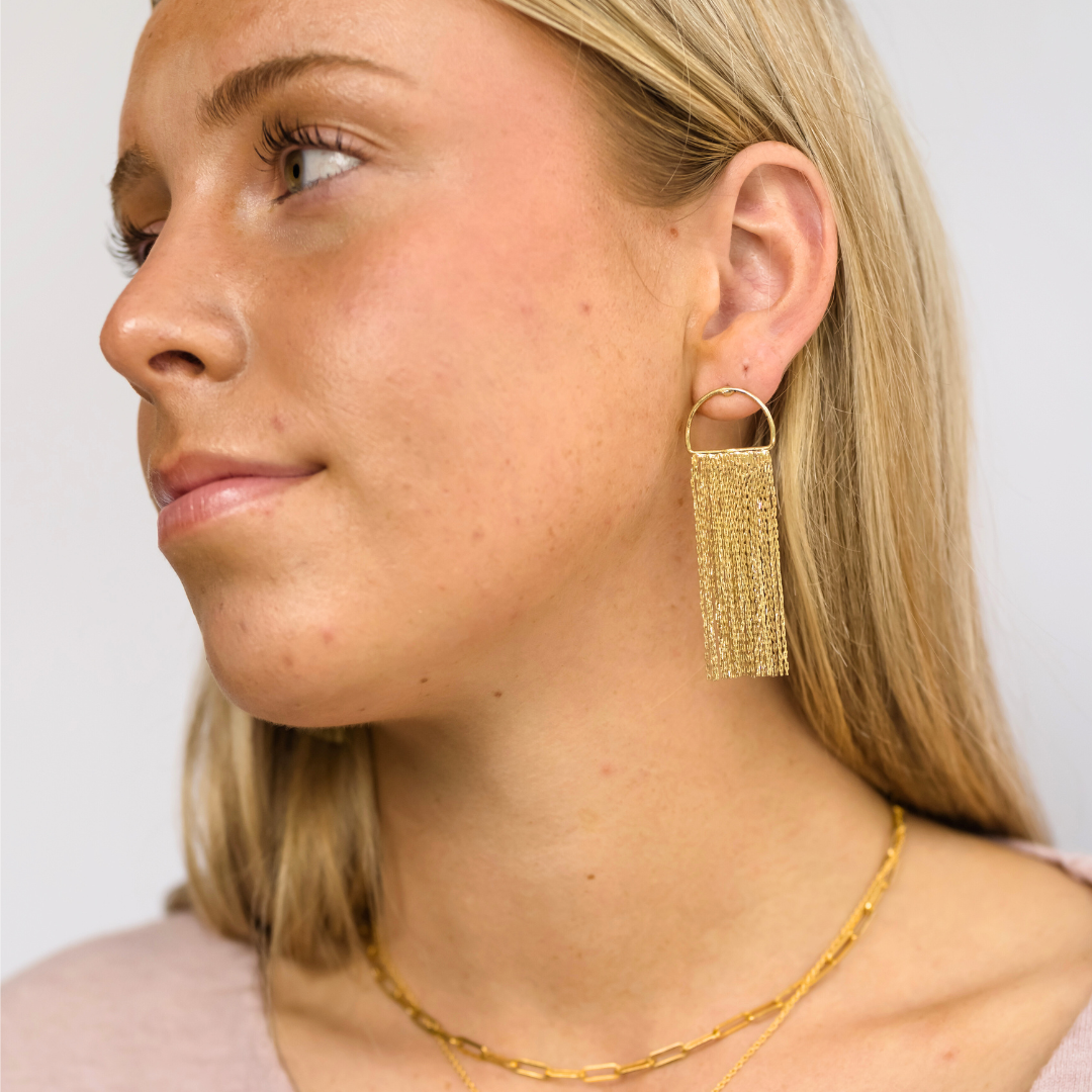 These Luminary Earrings were designed by the Threads Worldwide Socialpreneur team bringing together their fashion sense and knowledge of what you, our customers, like to wear. The fringe of these earrings are surprisingly structured balancing flow with a solid foundation.