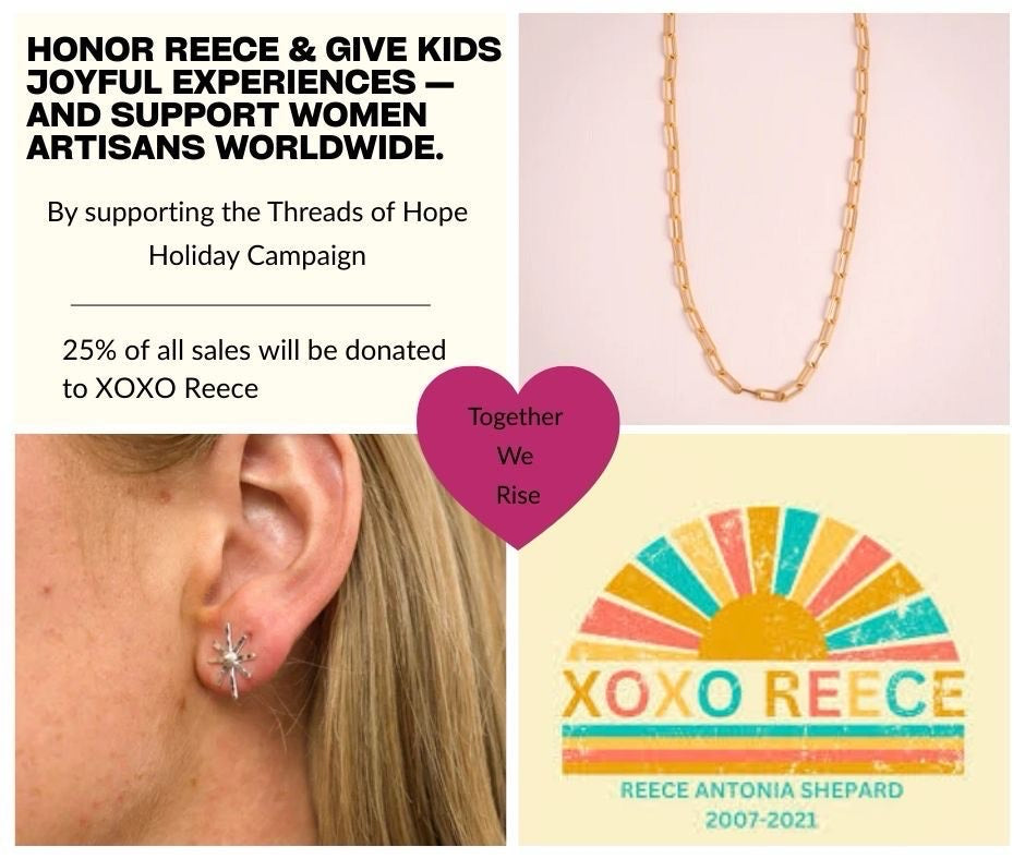 Each Threads Worldwide piece in this collection is handmade by women artisans around the world, creating fair-trade opportunities that uplift families and spark hope. Just as Reece’s laughter and compassion brought people together, this collaboration reminds us that even the smallest gestures can create lasting impact.